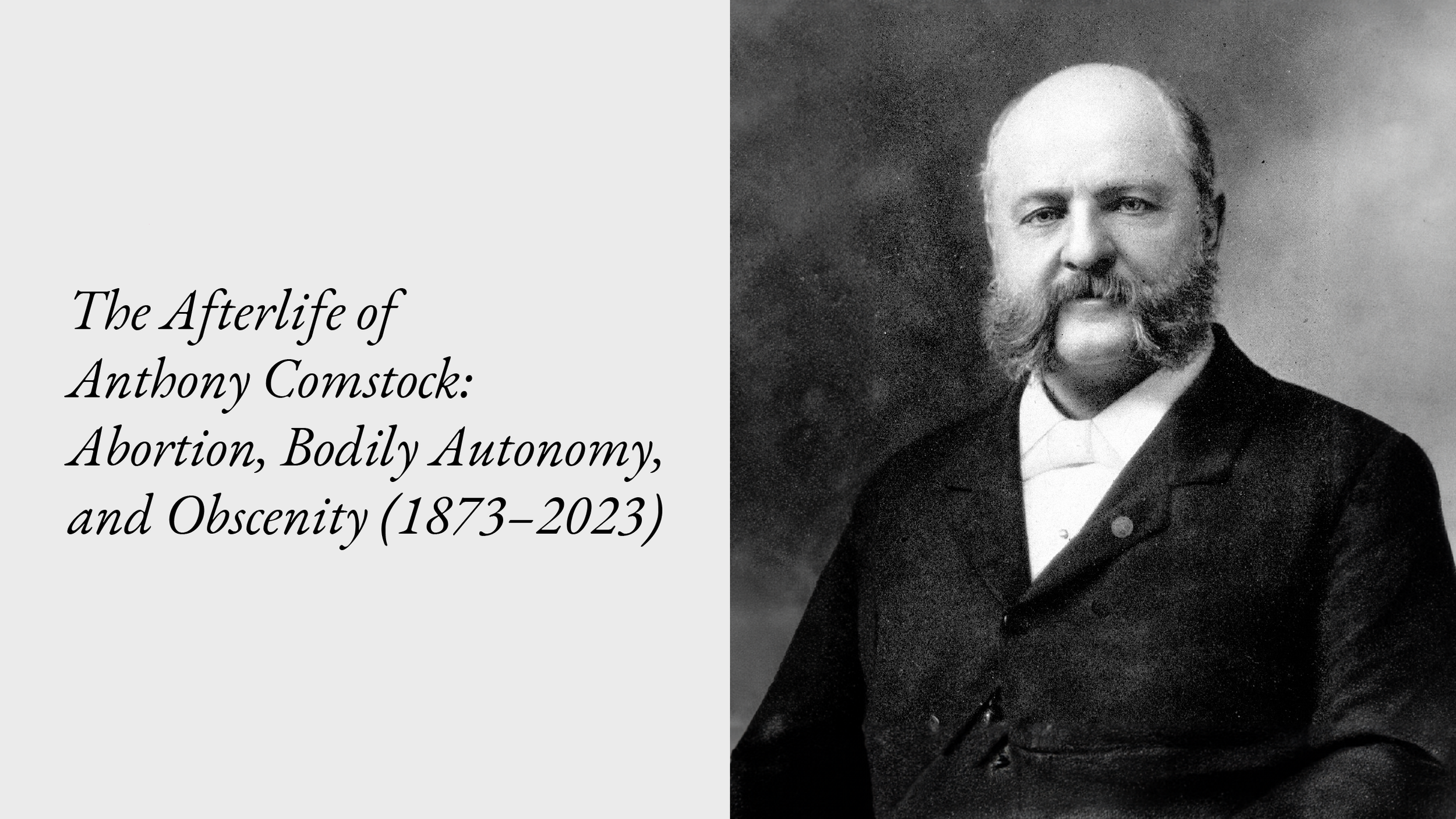 Kendra Albert: Hello, everyone. Welcome, we're so excited to be here with y'all, and on this spooky Halloween day. Welcome y'all to our event on The Afterlife of Anthony Comstock. My name is Kendra Albert, I'm the Director of the Initiative for Representative First Amendment, and I'm just gonna get us through a little bit of housekeeping before we get to the fun stuff. There's a couple of logistics, as you probably already have been notified, this event is being recorded, and it will be posted later, and in fact, we'll send out a link to all of y'all, so you can share it with all of your friends, enemies, you know, loved ones, less loved ones, et cetera. You can enable closed captions for yourself at any time, and thank you so much to Gloshanda and Tricia, our ASL interpreters for today. If you have questions for our panelists, and we hope that you will, you can use the Q&A box, and if you encounter any technical issues or have problems, you can please send us an email, and I'll drop the email in the chat in a second. Before I sort of, now that those housekeeping items are out of the way, I wanna just take a second to thank our sponsor, the Ford Foundation, and the staff of the Berkman Klein Center for Internet and Society for their support. We're really grateful for all of the work and effort that folks have put in in terms of making sure that we're able to do this event. So what we're gonna do today are fun activities, for the next couple of minutes is to do some greetings from me and Melissa Gira Grant, the co-organizers of ComstockCon. Then for about 35 minutes, we'll hear from our panelists, Jules Gill-Peterson, Whitney Strub, and Gillian Frank. Then we'll have time for Q&A with all of y'all, and then after that, we're gonna take a few minutes, and announce sort of what is ComstockCon, what's the thing that you're all here to see. But before we do any of that, I wanna talk a little bit about who this man is. So those of you who are unfamiliar, oh, this is Anthony Comstock, you know, the person who's afterlife we're here to celebrate or bury. And you might be wondering why we're sort of starting in 1873 for a conversation about abortion that's going on now. So that's because more than 150 years ago, Anthony Comstock, who was a former dry good salesman "Of no conspicuous talents and boundless energy" to quote journalism scholar, Craig LaMay, took up an obsessive campaign to stamp out prostitution, pornography, and contraception. He wasn't content to merely raid New York publishers, or decry those drinking in pubs, that was just a little too local for him. In 1873, he went to Washington, and Anthony Comstock succeeded in convincing Congress to pass a law to ban the mailing of lewd, lascivious, indecent and obscene or obscene materials. The power to enforce this law was in the hands of the postmaster general, a position he was appointed to, and occupied for the rest of his life, ruthlessly enforcing the law he had written, all in the name of suppressing what he called vice. Comstock's work and his law, frankly, are mostly remembered in terms of an attack on indecent literature, or to put it maybe in more modern terms, pornography. But what Comstock considered obscene was much broader. In fact, the Comstock Act's original text applies its provisions to the physical objects associated with abortion and contraception, condoms, for example, as well as speech explaining how to obtain them, or how to use them.